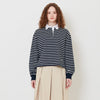 Women Striped Polo Sweatshirt - Navy - SW2508135A