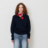 Women Double Collar Knit Top - Navy - SW2511184B